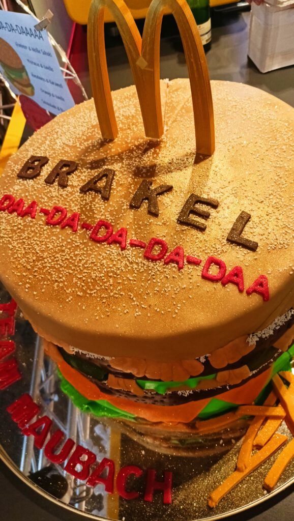 Jede/r durfte ein Stück der riesigen BigMac-Torte probieren.